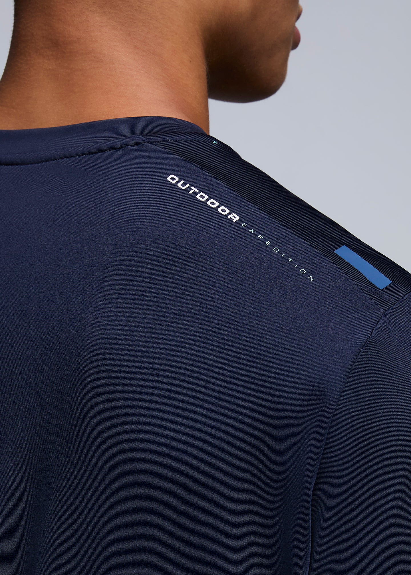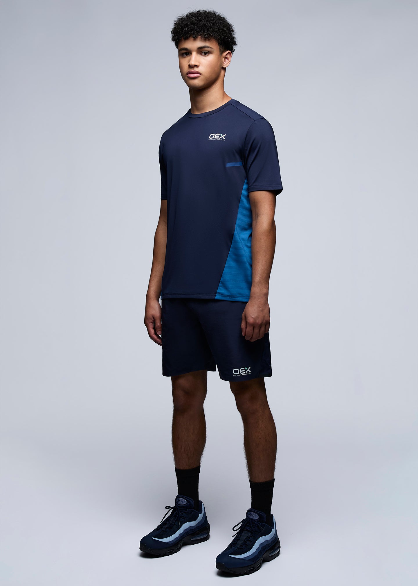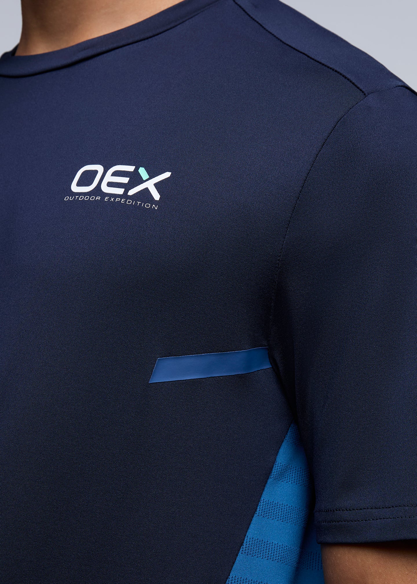 The Flash T-Shirt. Crafted from breathable polyester, this standard-fit tee is designed for all-day comfort. Featuring laser-cut vents for enhanced breathability and a seamless collar for a smooth, irritation-free feel. The twin-needle stitching and cut-and-sew panels add durability and style, while the OEX Blue reflective print branding completes the look.