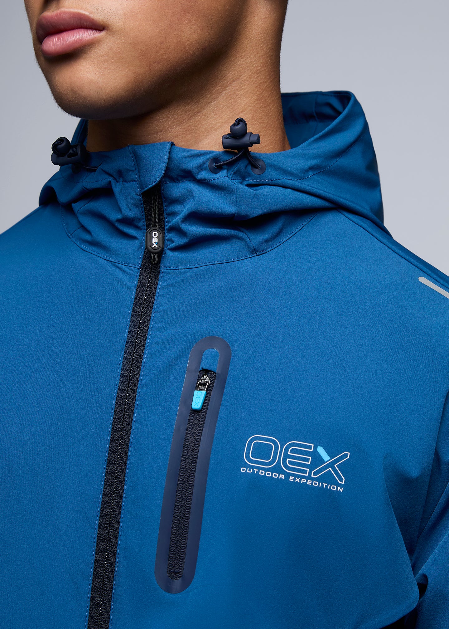 The Fell Track Top. Elevate your wardrobe with this versatile track top. Crafted from high quality polyamide, this tracksuit top features an adjustable bungee cord hood for a customised fit and secure zip pockets to hold your essentials. Complete with vented chest panel and the OEX reflective print branding. Matching track pant also available.